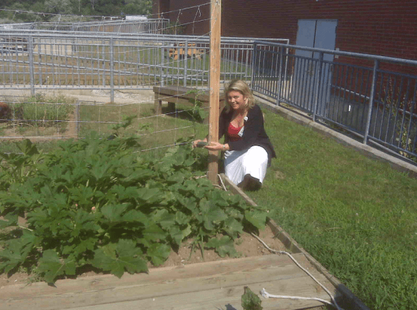 Quand ils ajoutent du terreau, Audrey leur parle de s’installer un jour dans leur propre appartement qui leur apportera un bon terrain pour grandir et prospérer. Les participants ont planté des laitues, des tomates, des betteraves, des concombres, des courgettes, des poivrons. « Nous suivons aussi la pratique des « trois sœurs » des Indiens. On plante du maïs, des haricots et des courgettes qui s’aident mutuellement à pousser. Le chef utilise nos légumes et nous surveillons notre production pour comprendre les concepts de rendement. »En plus du jardin potager, le centre offre aux résidents l’opportunité de travailler dans le jardin ornemental pour le maintenir en bon état. « Nous essayons de leur donner chacun leur coin pour qu’ils s’en sentent responsables. » Au centre, Audrey pratique le « square foot gardening », le jardinage en carré qui développe les capacités mathématiques, et le jardinage vertical pour apprendre à économiser l’espace. Audrey affirme que le centre d’Exeter est le seul à offrir un programme d’hortithérapie et pense qu’elle pourrait être amenée à essaimer son idée dans d’autres centres du Job Corps.