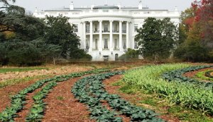 Depuis leur arrivée à la Maison Blanche, les Obama cultivent un potager bio d’environ 100 m2 sur la pelouse sud de la résidence. Les légumes et les fruits de ce jardin servent à nourrir la première famille et leurs invités. C’est surtout la femme du président qui a pris l’initiative de ce jardin qui cadre bien avec sa campagne contre l’obésité. Elle reprend ainsi une tradition de jardins présidentiels dont le dernier exemple en date était celui d’Eleanor Roosevelt qui avait planté un « victory garden » pendant la Seconde guerre mondiale.