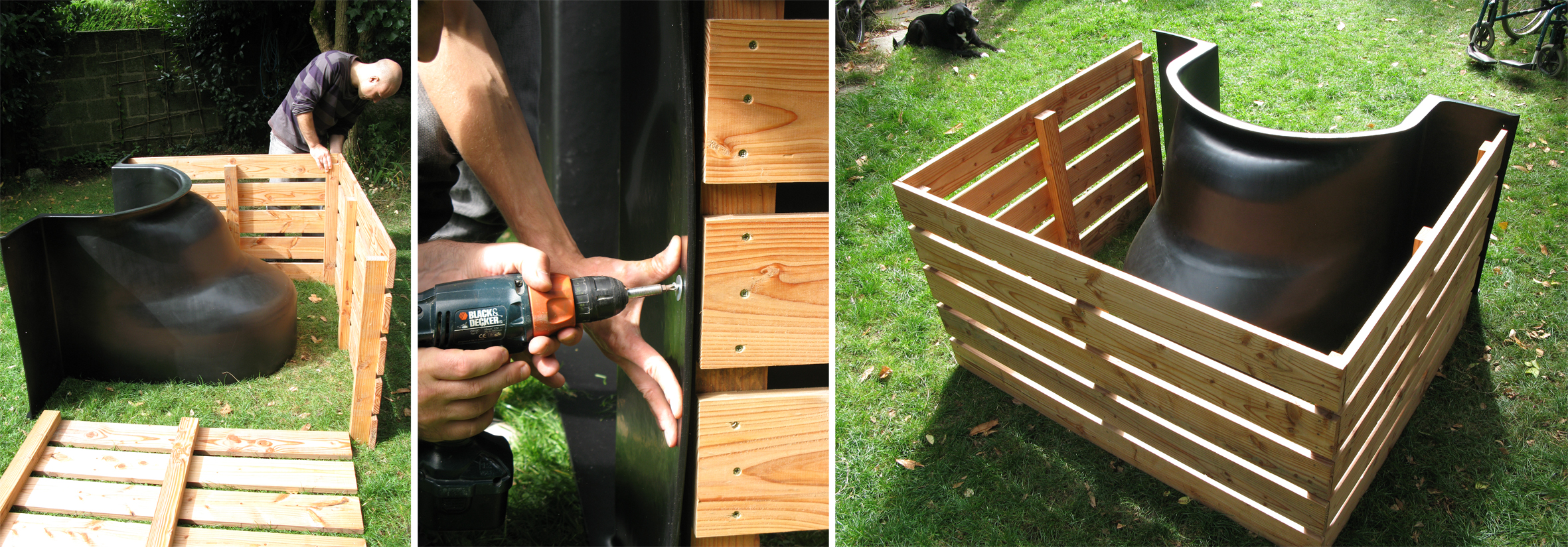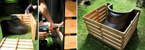 De conception nantaise, le produit est fabriqué par une entreprise de rotomoulage en Ile-et-Vilaine (Rototec) et la menuiserie est assurée dans un atelier de réinsertion à Nantes (Association ATAO). Techniquement, « la coque est en polyéthylène 100% recyclé et 100% recyclable, et les cotés plans en pin de Douglas, un bois issu de forêts françaises et traité naturellement par oléothermie. »