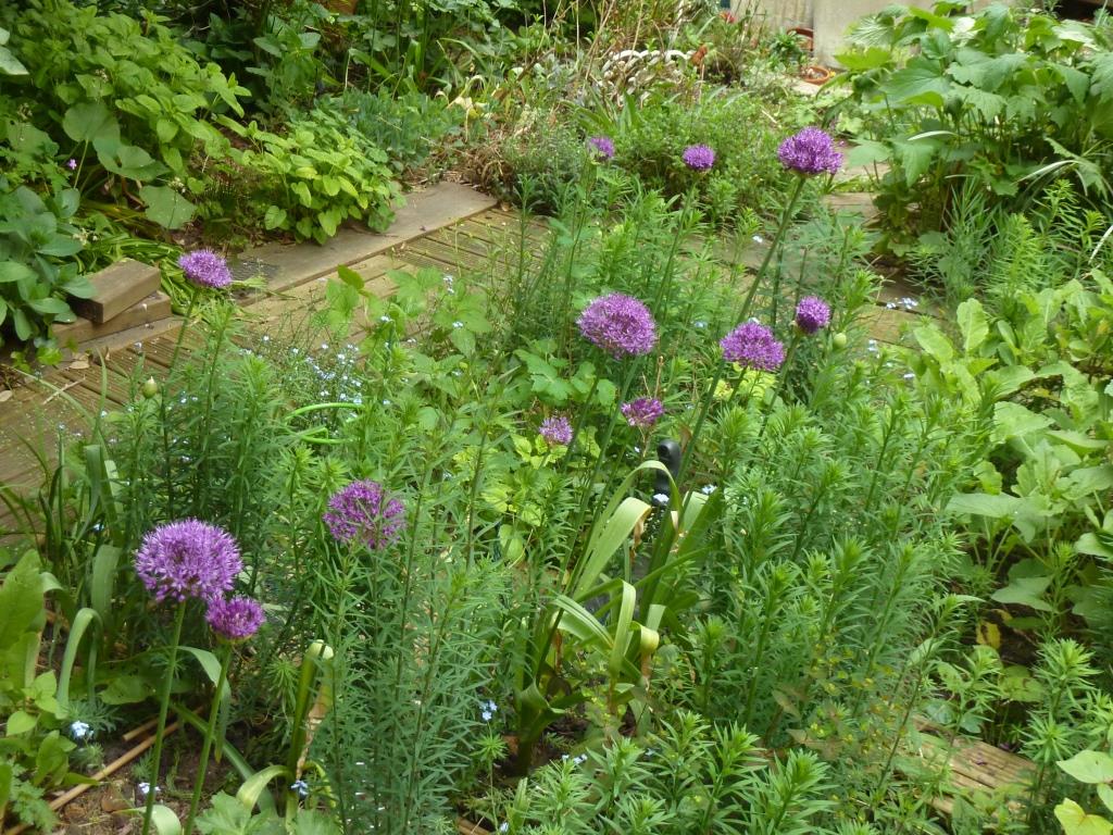 Allium et linaria purpurea dans le jardin de Marie-France Banvard