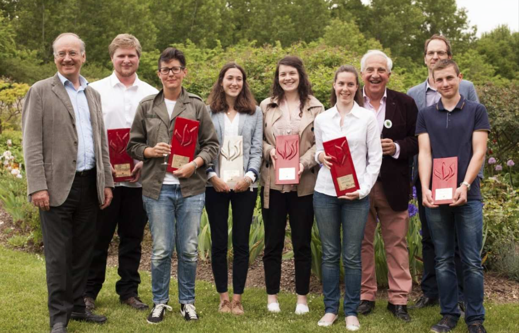 Les lauréats avec Bruno Lanthier, PDG de Truffaut et Daniel Joseph et Jean-François Denize de la Fondation Truffaut. Ce sont les Poteries d'Albi qui ont créé les trophées.