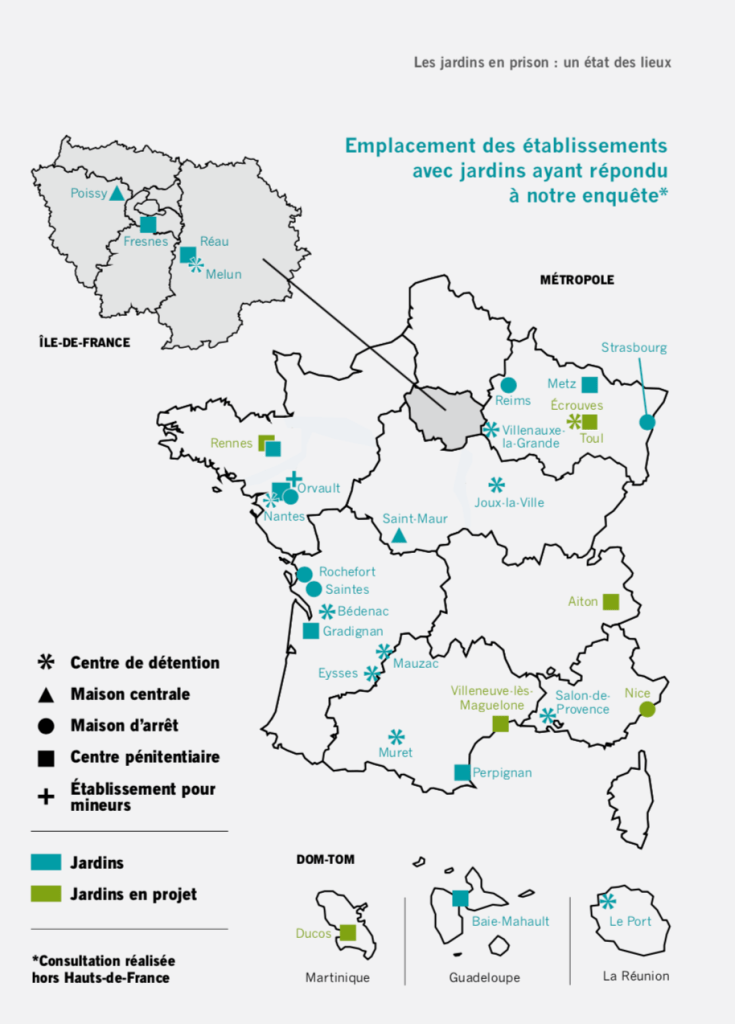 Capture d_écran 2018-12-02 à 08.46.50 Published décembre 2, 2018 at 914 × 1274 in Les jardins en prison : le livre blanc qui fait le point Carte des jardins recensés dans le livre blanc ANVP/Green Link